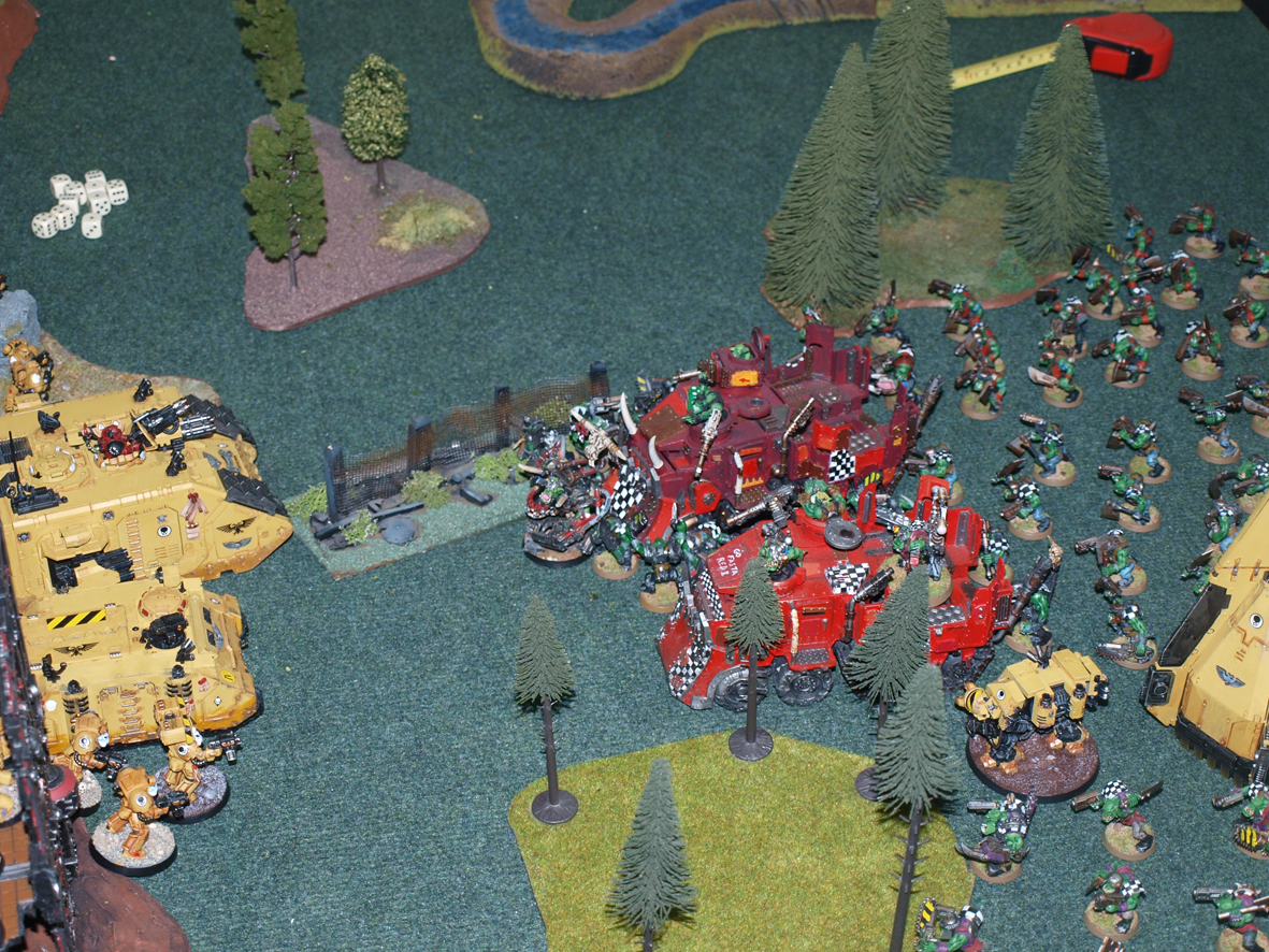 The Furioso Dreadnought was the sole hero of the battle, not only it managed to eliminate an ork mob on a single round it finally managed to kill Gazgkull thraka and then survive long enough (while still killing more orks) contesting one of the objectives, yet the heroic attempts of the Furioso dreadnought werent enough and the game ended in favor of...